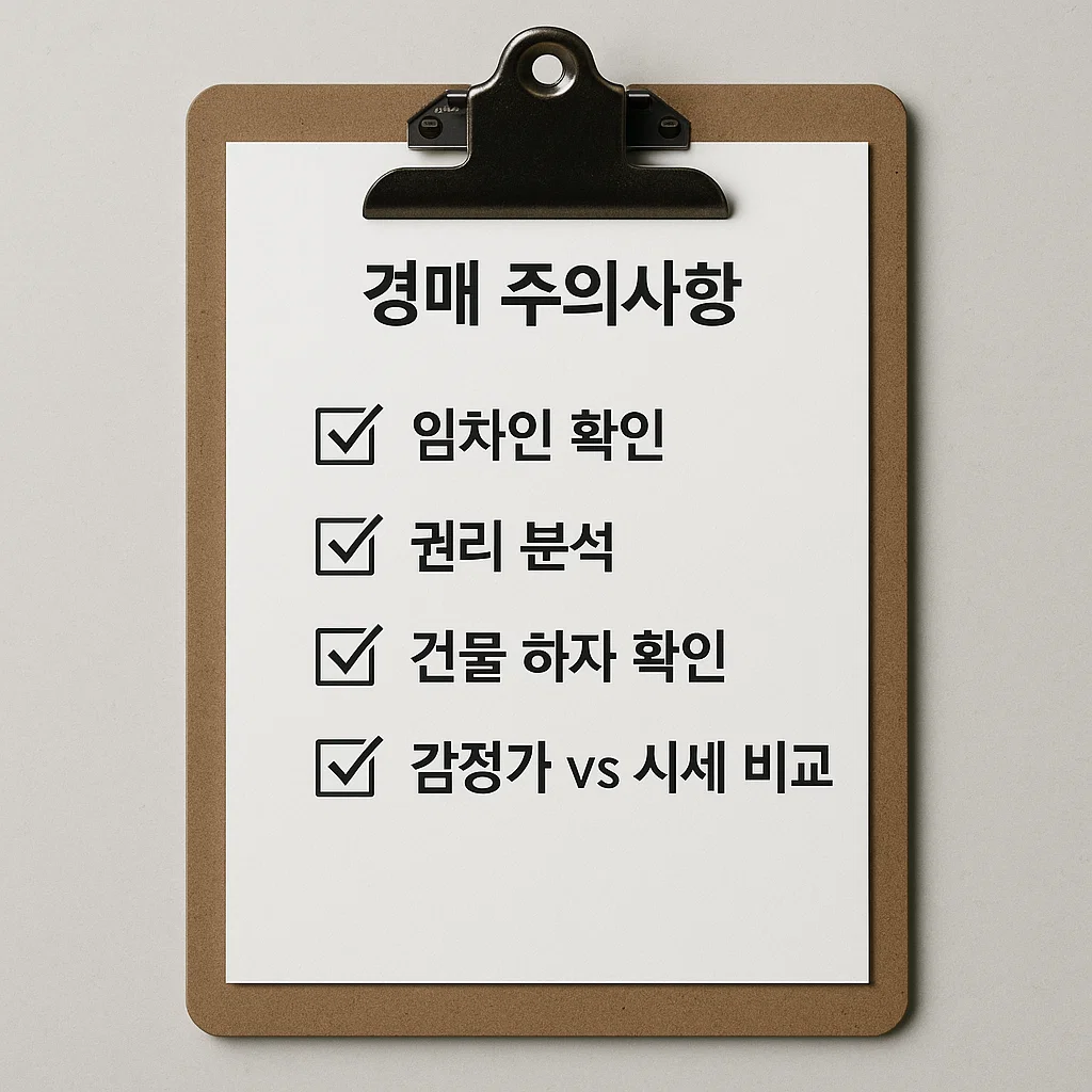 경매 유찰이 많이 된 물건을 보면 누구나 유혹을 느끼게 됩니다. ‘이 가격이면 무조건 이득이겠지’라는 생각이 들기 마련이죠. 하지만 경매 주의사항을 간과한 채 입찰에 나섰다가는, 초보자가 감당하기 어려운 문제에 직면할 수 있어요.